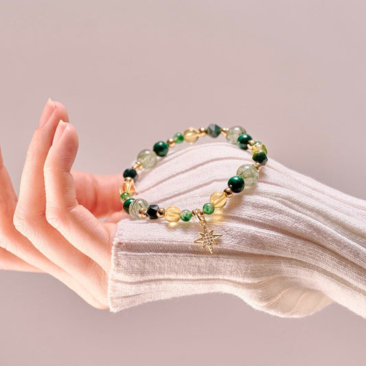 【森精靈】綠髮晶。黃水晶。孔雀石。綠瑪瑙(3尺寸可選)