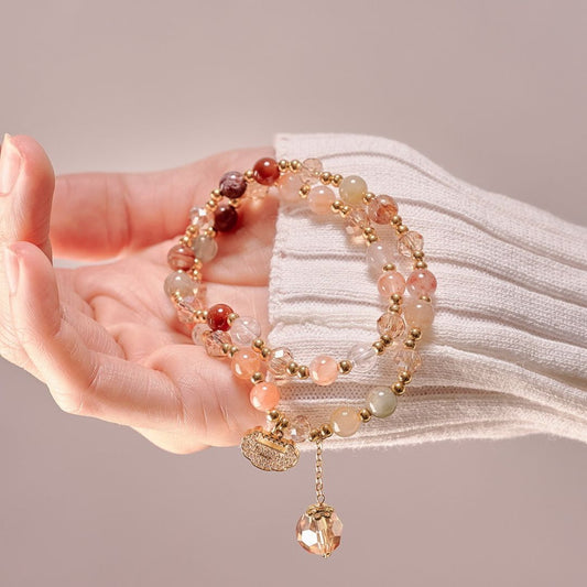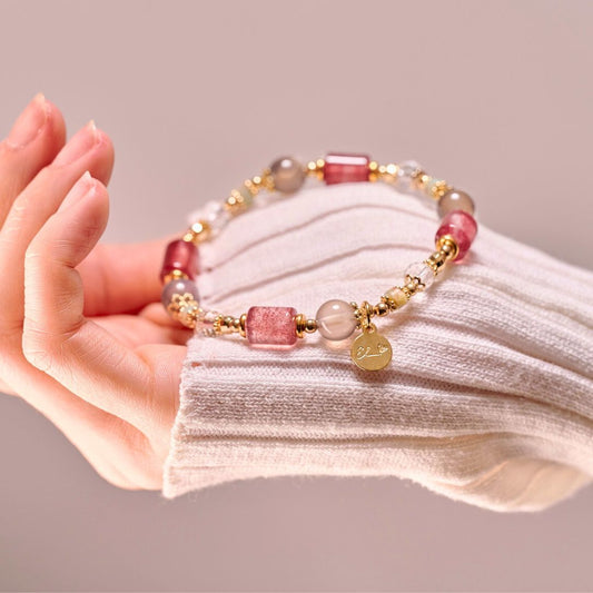 【粉戀甜心】草莓晶。灰瑪瑙。白水晶。金絲玉