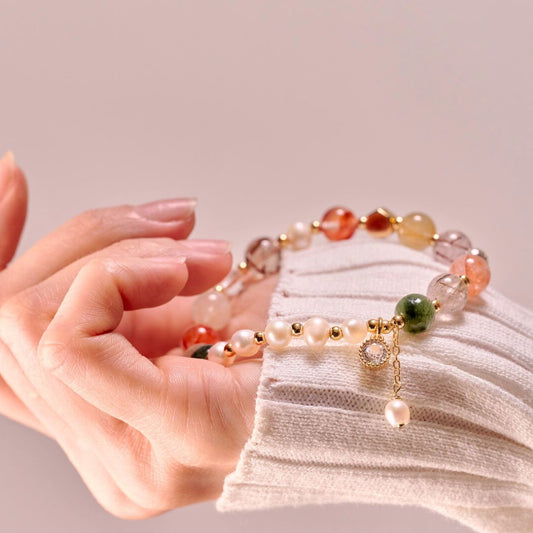【彩韻】彩髮晶。紅膠花。天然珍珠