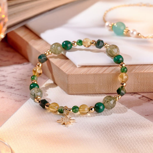 【森精靈】綠髮晶。黃水晶。孔雀石。黃瑪瑙。綠瑪瑙(3尺寸可選)