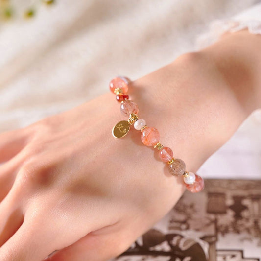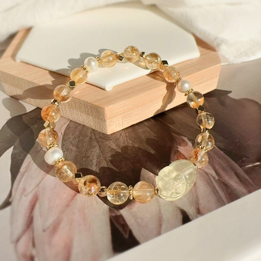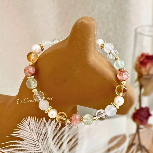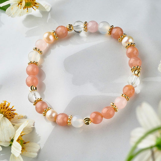 【托斯卡尼橙月光】太陽石。粉晶。白瑪瑙。珍珠