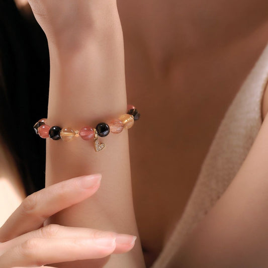 【神隱魔女】黑金超七。草莓晶。紅石榴石。黃塔晶。茶晶切面。愛心掛飾(3尺寸可選)