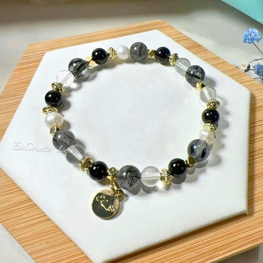 黑色系水晶,加送消磁晶【夜巴黎】黑髮晶。黑瑪瑙。白水晶。天然珍珠