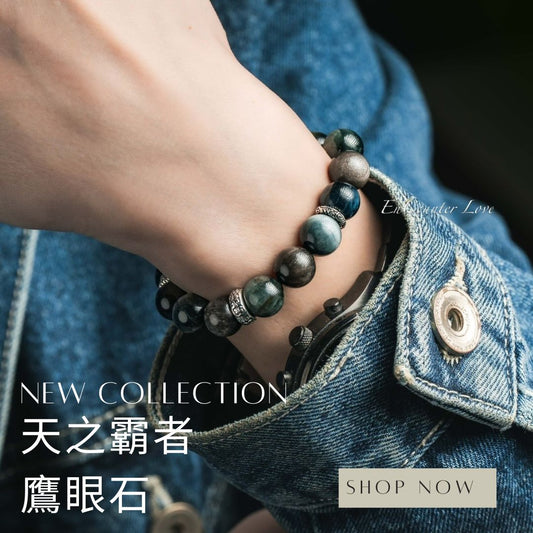 黑色系水晶,加送消磁晶【天之霸者|男款】鷹眼石 。銀曜石。藍虎眼