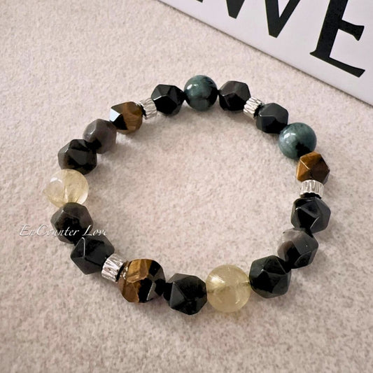 黑色系水晶,加送消磁晶【金鷹|男款】鷹眼石。金髮晶。銀曜石。黃虎眼