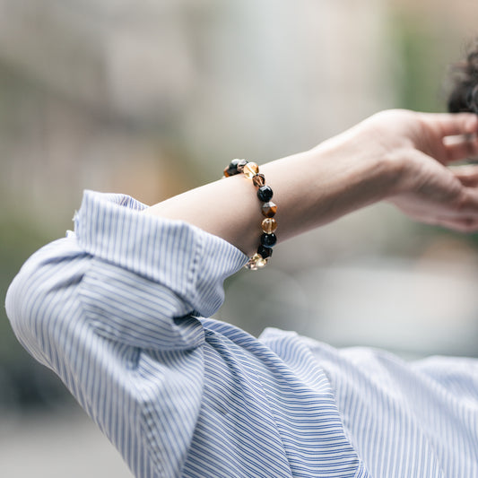 黑色系水晶,加送消磁晶【虎翼|男款】黄虎眼。黑曜石。茶晶。金髮晶。黃水晶