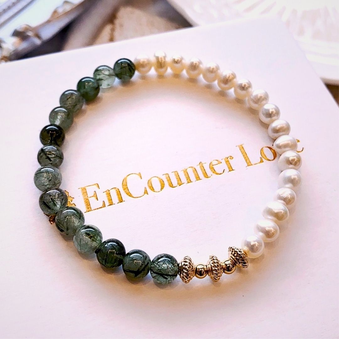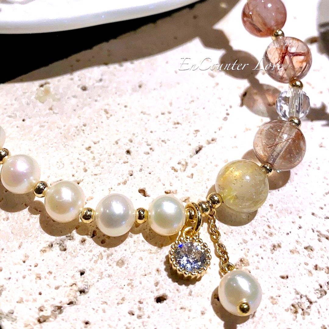 珍珠象徵純潔和愛情,而水晶則象徵著智慧和招財水晶。彩髮晶是高貴的晶石,具有權威性,能聚財、開運、擋煞、增加勇氣和積極的態度,幫助配戴者做出正確得判斷和決定,對於財運 事業 領導 運勢 自信心有莫大的幫助。