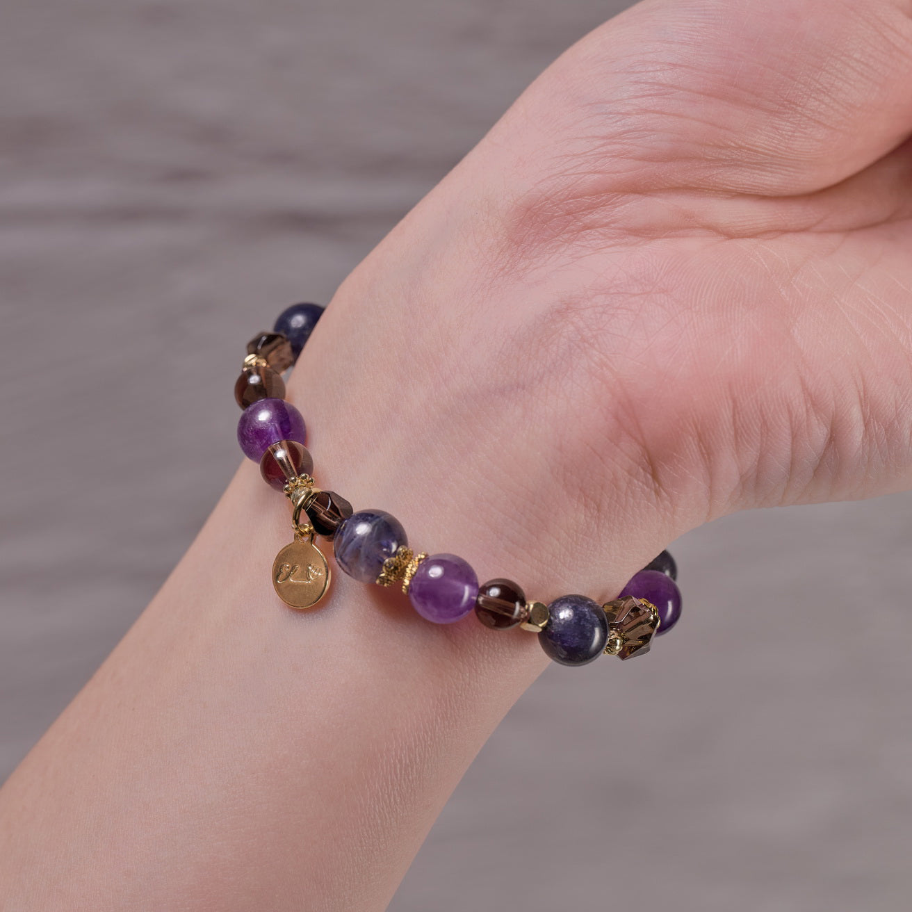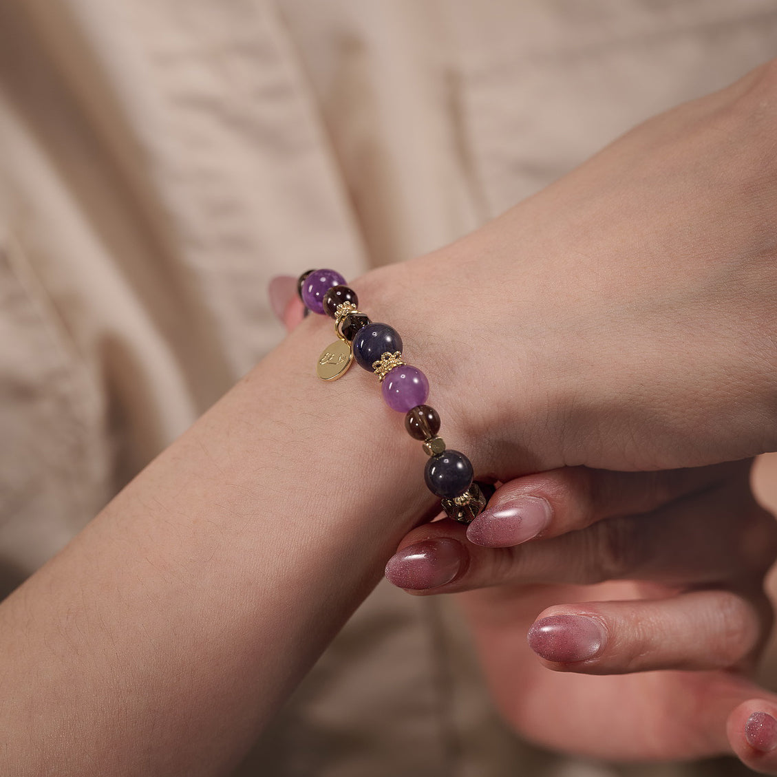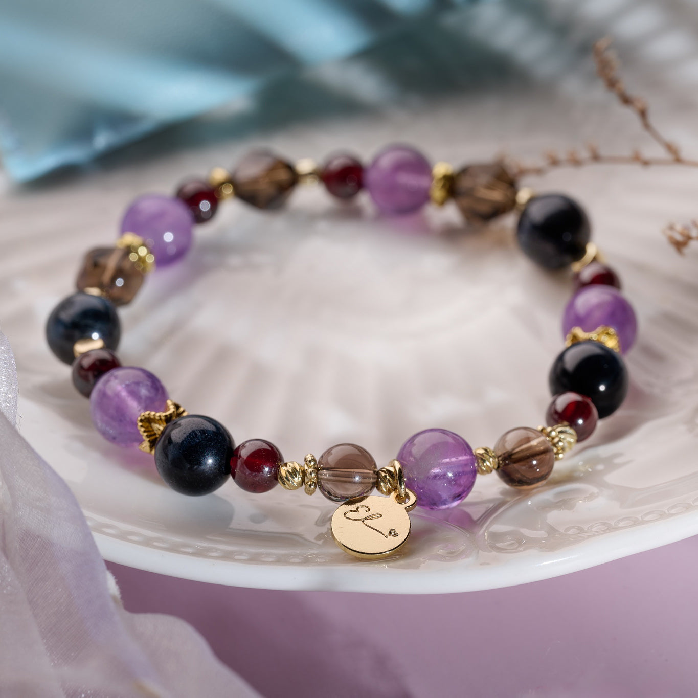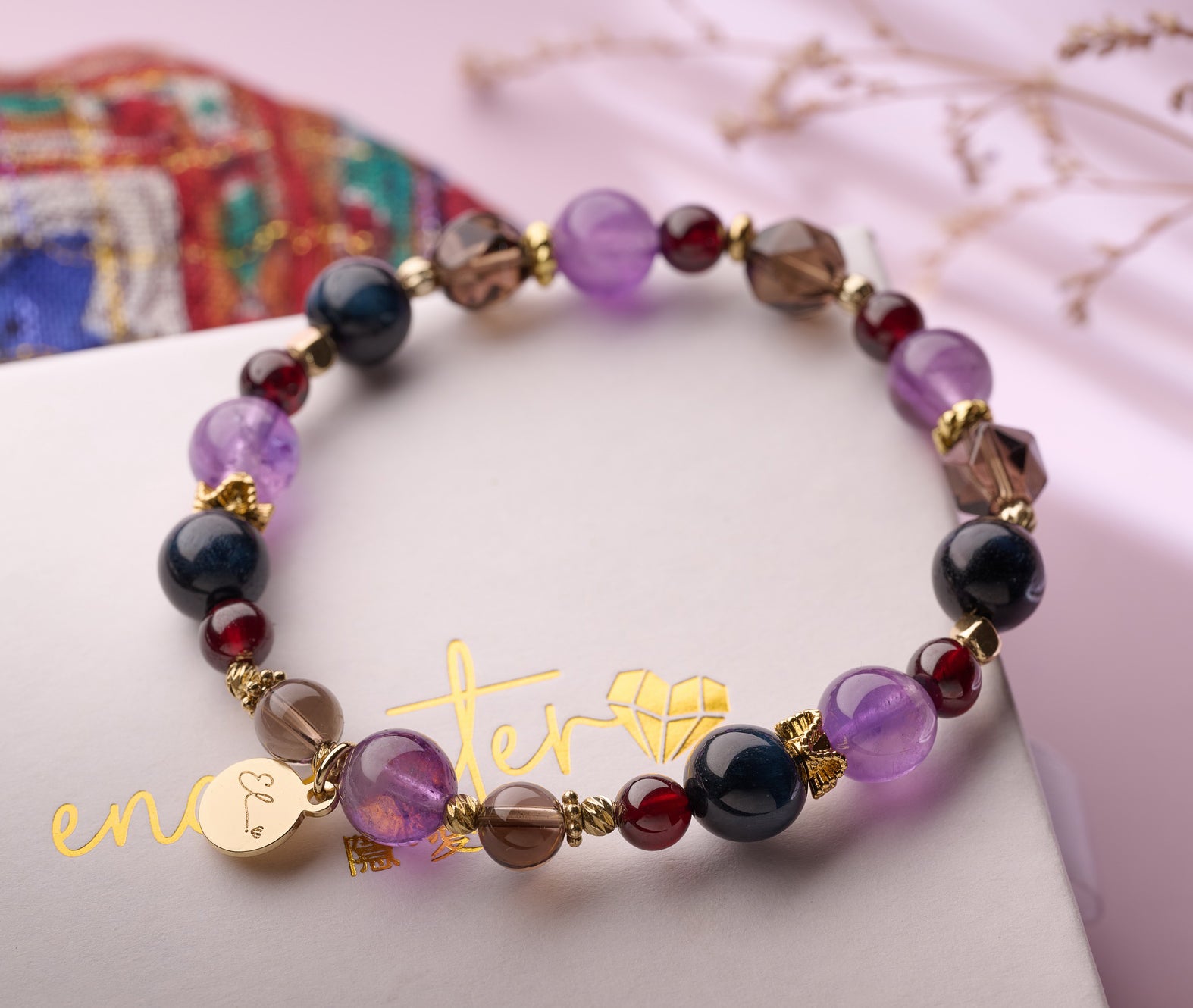 【夜絲絨】墨藍虎眼、紫水晶、茶晶、紅石榴石