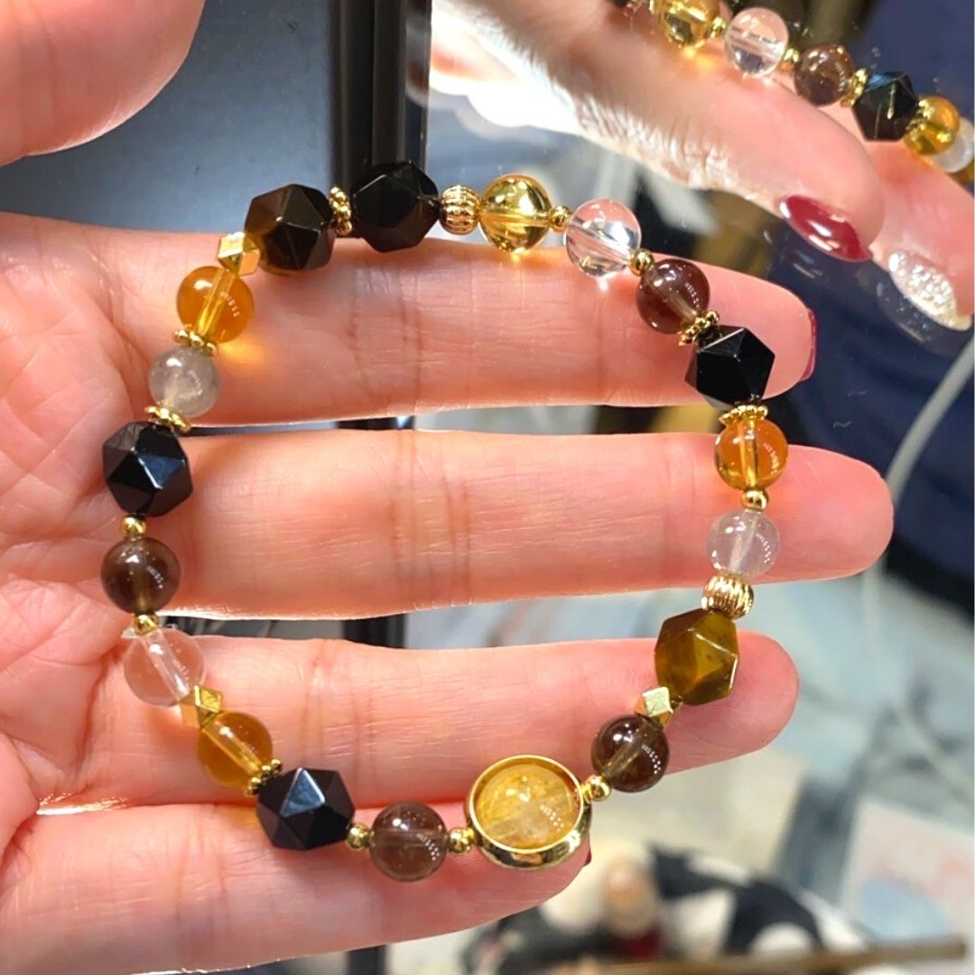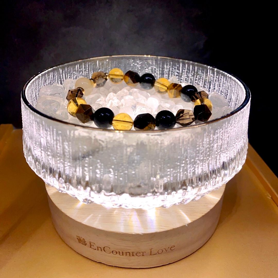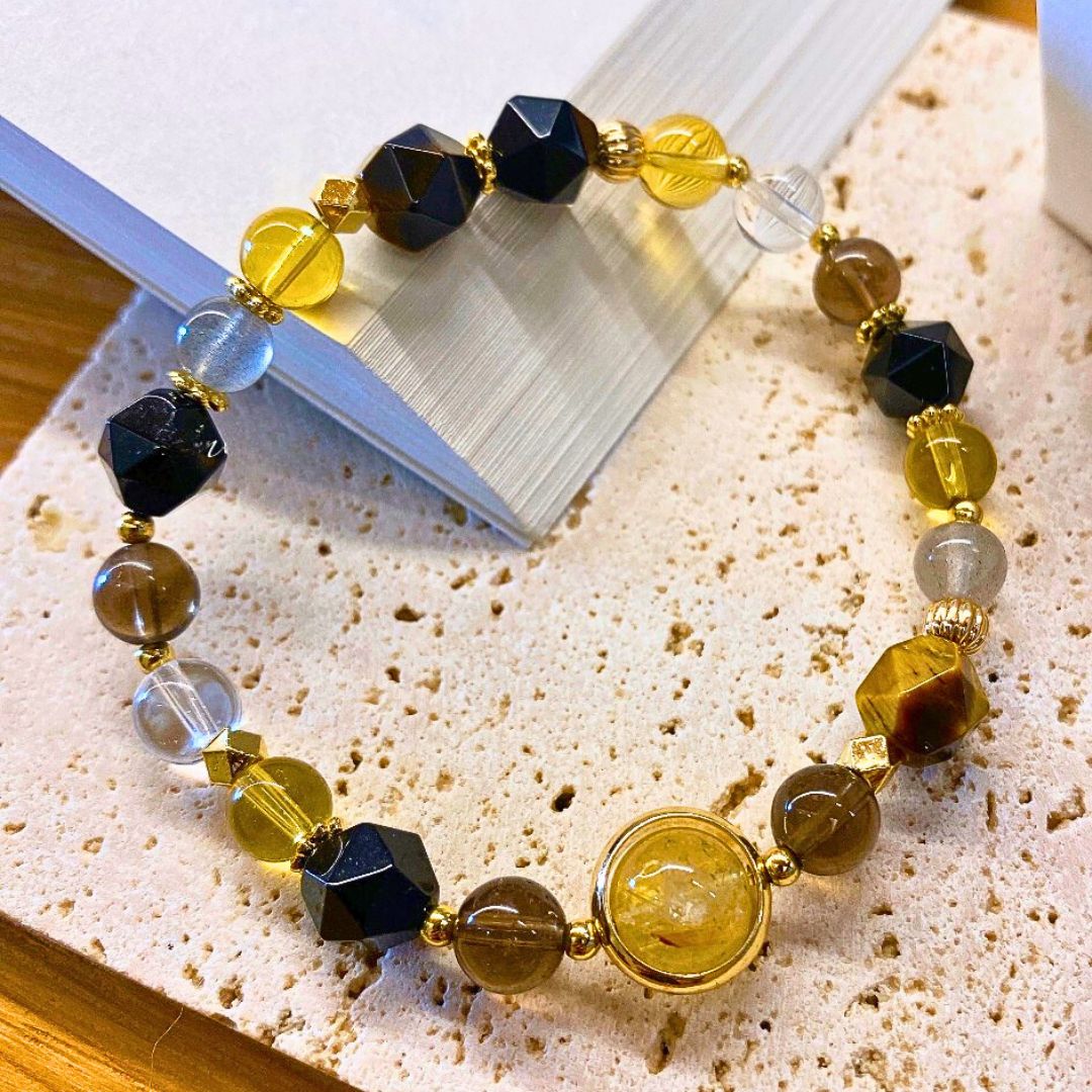 ❖ 使用礦石:金髮晶(約8mm)、黃虎眼(約7-8mm)、黑瑪瑙(約7-8mm)、黃水晶(約6mm)、白水晶(約6mm)、茶晶(約6mm)、灰月光石(約6mm)