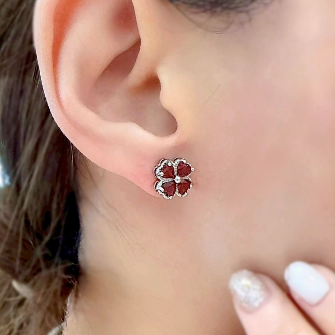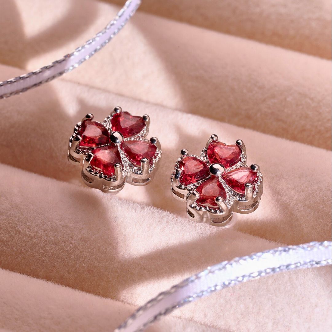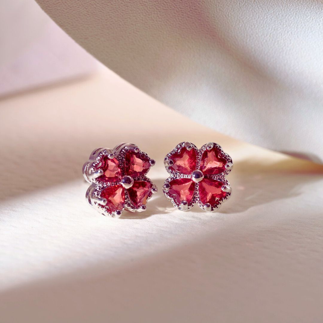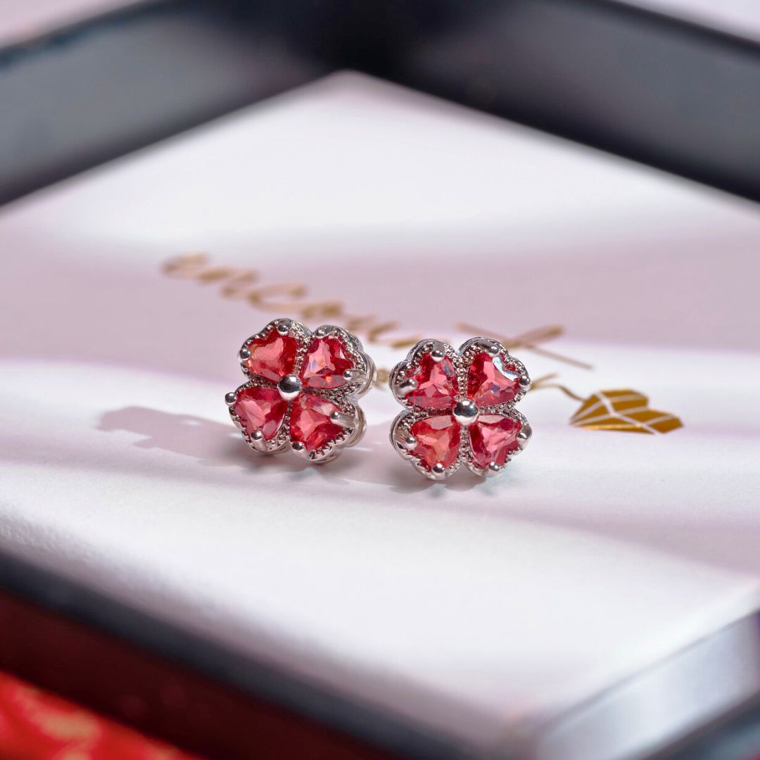 🆕【925純銀水晶】紅石榴石 幸運四葉草 水晶耳針(贈迷你收納盒+飾銀布)